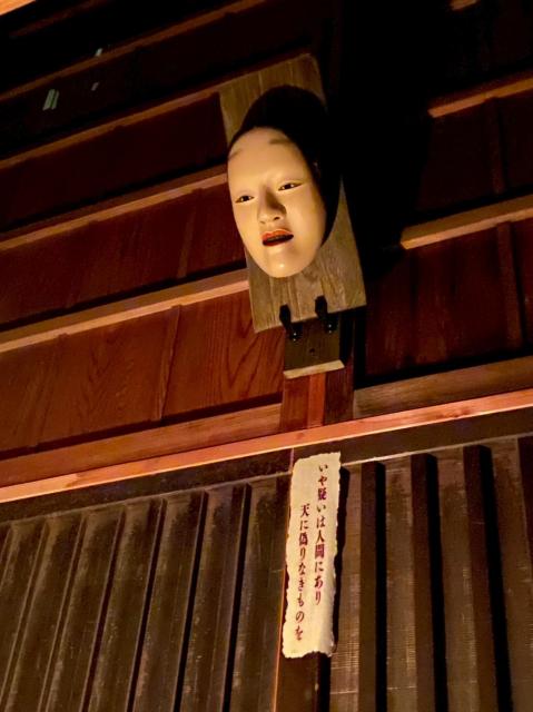 上七軒にある築100年の町家を改装したギャラリーで、能楽師 山田伊純氏所蔵の能面、及び周辺の道具を夜間、和蝋燭職人 青栁龍宙氏作の和蝋燭で魅力的に演出・展示し、解説・トークイベント(事前予約制)を開催致します。