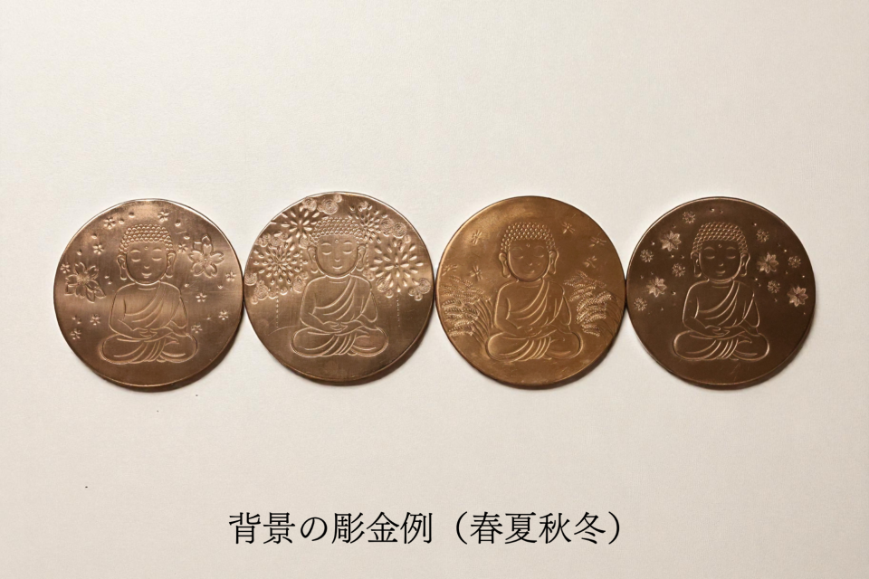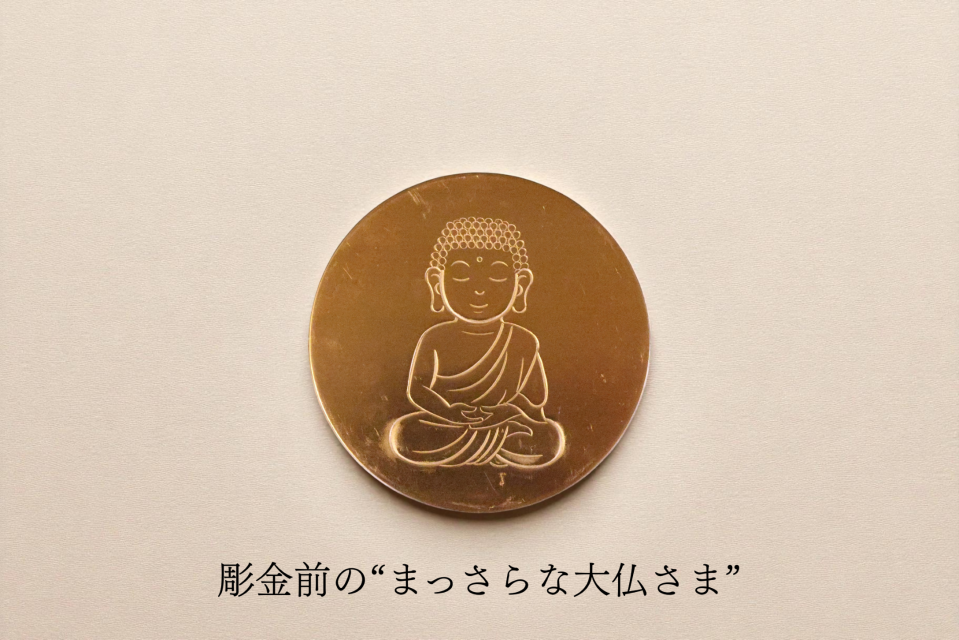 ※大仏の本体部分は弊社にて事前に彫金済みです。 体験者様には背景模様の彫金と、 錺金具パーツの取り付けを体験していただきます。