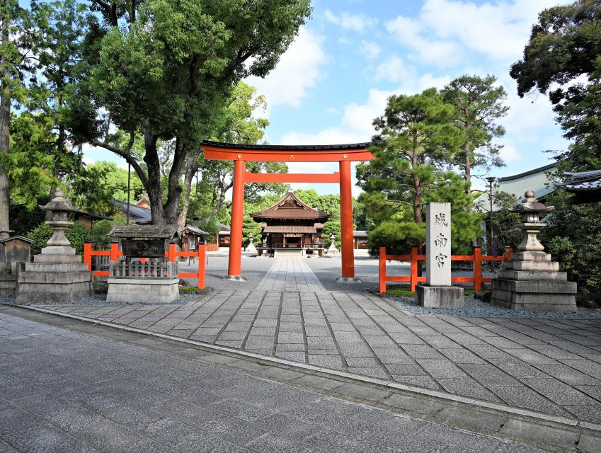 京都駅八条口(9:30)=城南宮(参拝・五社めぐり色紙)=松尾大社(参拝)=上賀茂神社(参拝/あの人気店「上賀茂きりん」の特製弁当積込)=平安神宮(神職のご案内付で拝観)=八坂神社・円山公園(参拝・散策)=京都駅八条口(16:00頃)