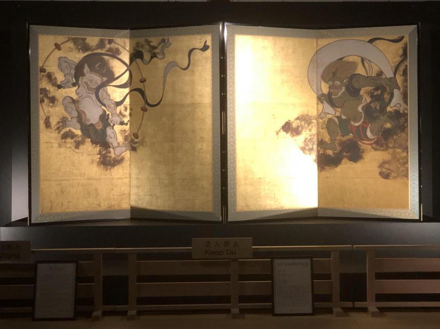 ①特別設置の「風神雷神図」、達磨大師「不識」掛け軸