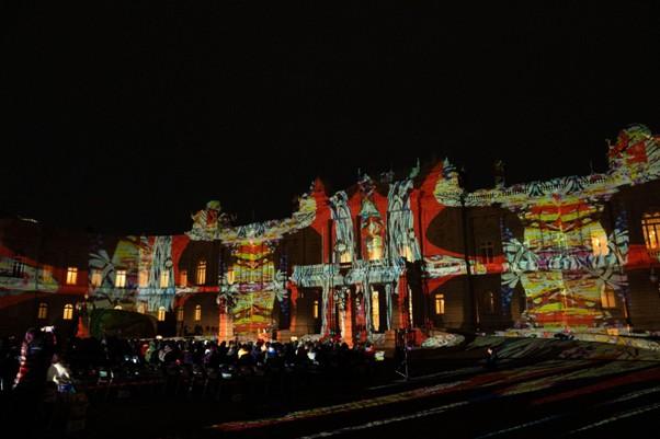 夜の静寂に包まれた方丈前庭では、プロジェクションマッピングが「不識」の世界観を描き出し、