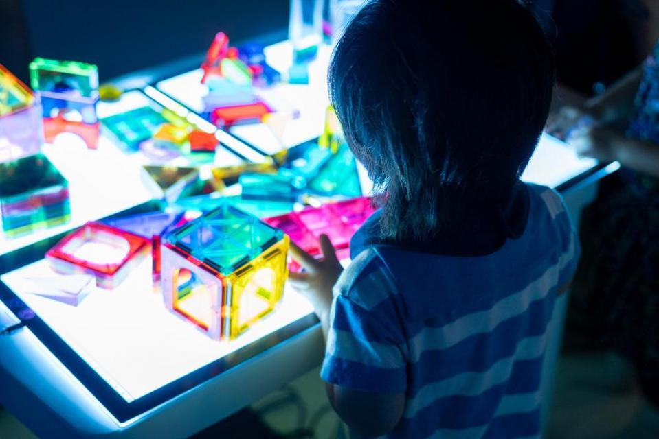クリアでカラフルなマグネットタイルや、積み木を使って遊ぼう!
