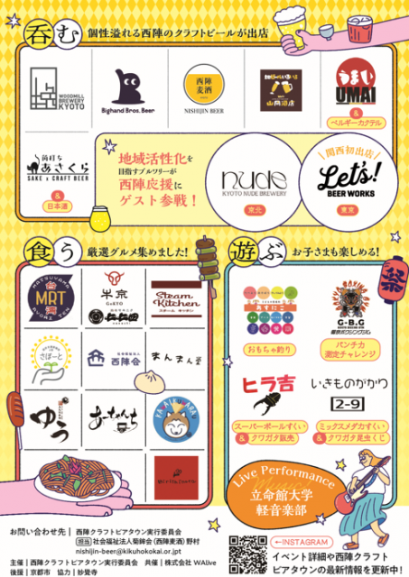 クラフトビールと美味しいフード、そして笑顔があふれるひとときを、ぜひ西陣でご一緒にお楽しみください!