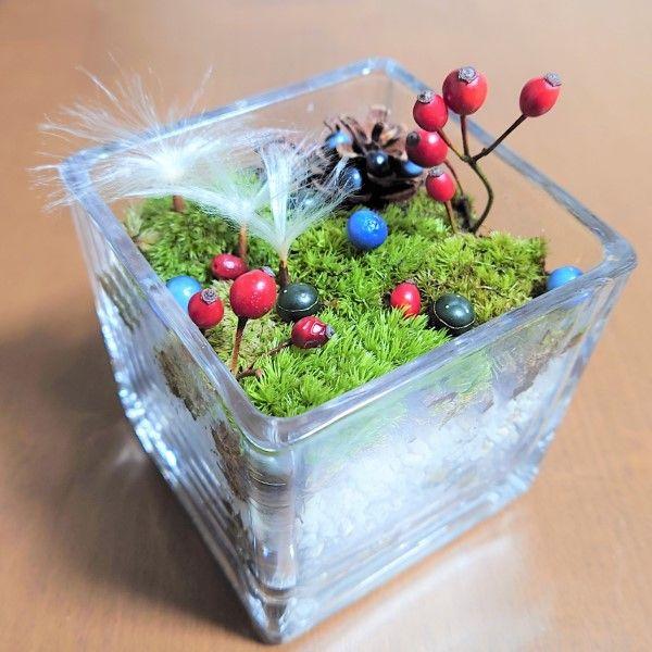 見分けがつくようになったら、お庭に出て、観察しましょう。さっきさわった苔が、実際に庭師の手入れでお庭の中ではぐくまれている様子は、感涙。今回はクリスマス前の開催のため、特別に苔をクリスマス風にデコレーションしたものもお持ち帰りできます!