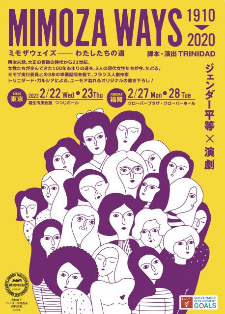 70名を超える女性へのインタビューを元に、女性たちが歩んできた、日本の100年あまりの道を、3人の現代女性たちが今、たどる!ミモザ実行委員とフランス人劇作家 トリニダード・ガルシアによる、ユーモア溢れるオリジナルの書き下ろし!