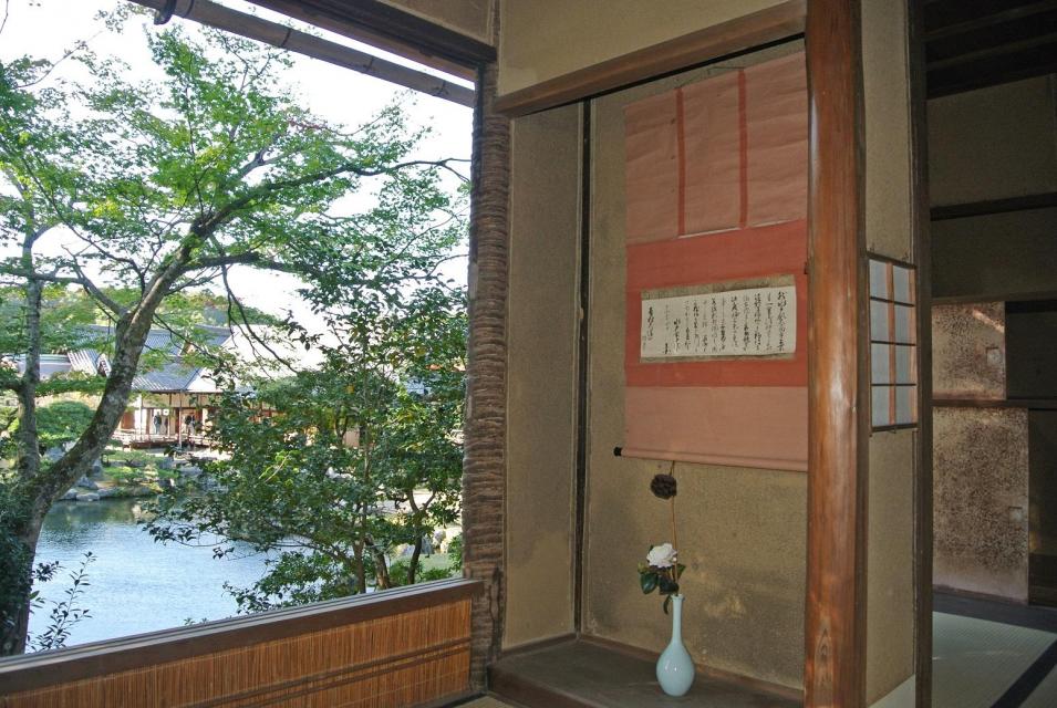 真言宗醍醐派総本山で世界遺産。三宝院は歴代座主が居住する「本坊」で、表書院(国宝)から望む庭園(特別史跡・特別名勝)は、名石「藤戸石」をはじめ石組と刈込が見事な、桃山時代を代表する池泉式庭園である。今冬、快慶作の優美な弥勒菩薩坐像(重文)を安置する弥勒堂(重文)に外陣まで入って拝観できるほか、庭の中に建つ茶室「枕流亭(ちんりゅうてい)」も「京の冬の旅」では40年ぶりに特別公開。聚楽第からの移築と伝えられ、棕櫚(しゅろ)や栗など珍しい材が使われた秀吉好みの風情ある茶室である。※個人での拝観は予約不要です。