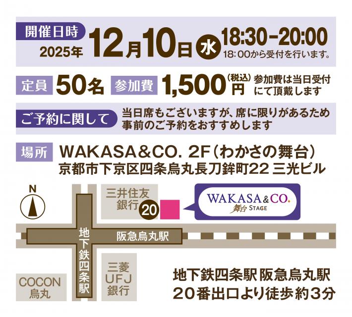 | 場所 | WAKASA&CO. 京都四条店2階 わかさの舞台 京都市四条烏丸長刀鉾町22 三光ビル |