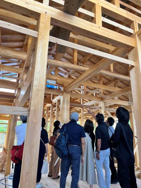 築100年の町家で、実際にその構造を見て知って、町家のことに詳しくなれる「見て学べる京町家ツアー」。伝統建築技法により京町家建築に特化した祗園内藤工務店(代表・内藤朋博)が、京都市の京町家賃貸事業として活用している「聚楽猪飼邸(じゅらくいかいてい)」にて、町家の構造や部位の名称について、実際に見ていただきながら解説をします。その後、移動して、祗園内藤工務店が建築中の、昔ながらの石場建ての伝統構法の建築現場に足を運び、建築中の現場を実際に見ることができます。古来の町家を覗いてみたいという町家ファンの方から、町家や伝統構法の家を建てて住んでみたい方、同業者の方まで、たくさんの方のお越しをお待ちしています。現存する大塀造(だいべいづくり)の築100年の大型京町家と、神社仏閣で知られる「石場建て」の伝統構法の家の新築現場を見学できる希少なツアーです。