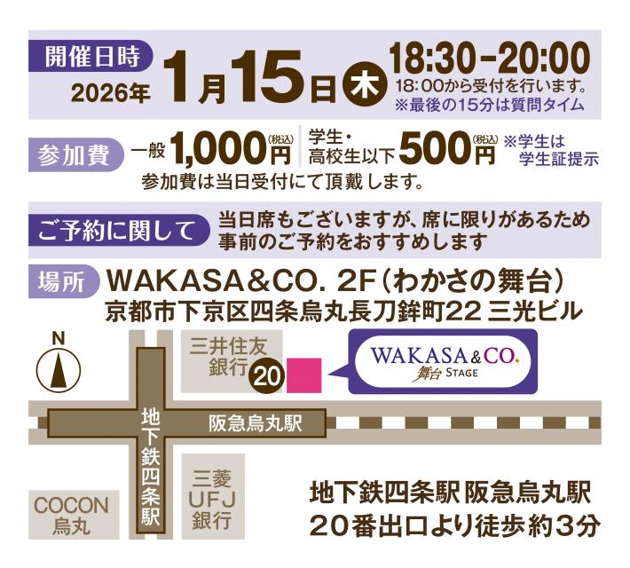 | 場所 | WAKASA&CO. 京都四条店2階 わかさの舞台 京都市四条烏丸長刀鉾町22 三光ビル |