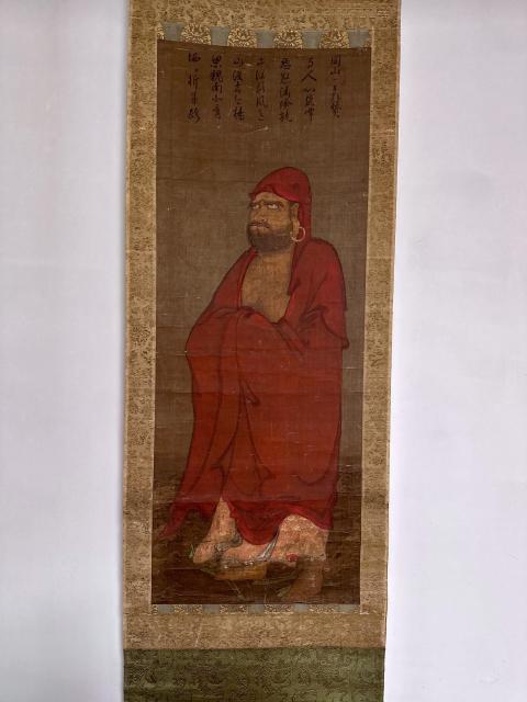 達磨大師が一葉の芦に乗り渡海する姿を描いた本作は、室町期禅画を代表する貴重な文化財です。