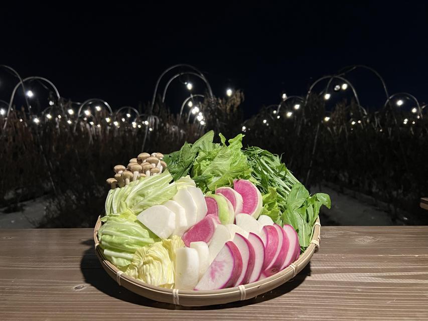 イルミネーションに包まれた畑での収穫体験に加え、採れたて野菜を使った「星空鍋」も登場し、心も体もぽかぽかに!