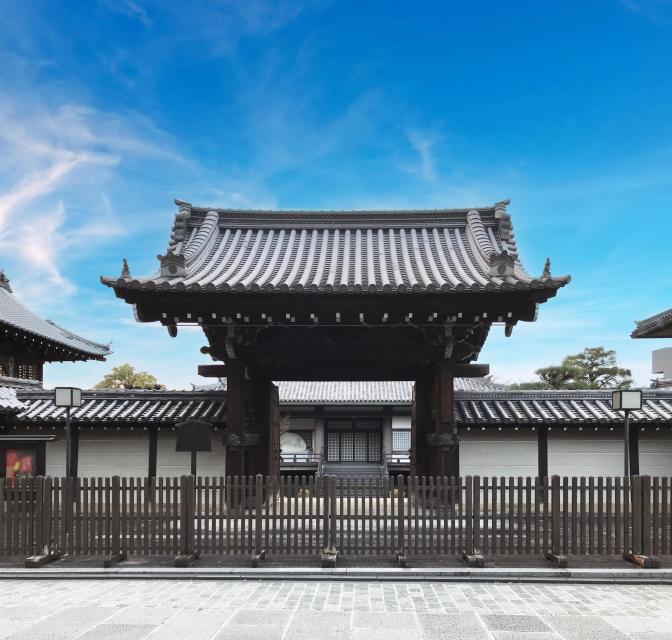 天正15年(1587年)、織田信長・信忠父子を追悼供養するため正親町天皇が貞安上人に命じ創設された寺院。通常非公開の寺院ですが、今回の特別公開では、織田信長・信忠墓碑、石川五右衛門墓所もお参りいただけます。現在の大雲院がある地は元大倉財閥創始者・大倉喜八郎男爵の京都別邸。1927年、喜八郎の生誕90年を記念して建設された祇園閣(国登録有形文化財)は建築家・伊藤忠太設計の昭和初期の名建築です。また、大雲院創建400年を記念して、昭和63年には祇園閣の内部に敦煌の壁画が模写されました。閣上からの眺望と合わせてお楽しみください。
