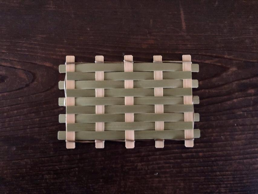 カップなどを置いても滑りにくいよう竹の身の部分を使用し 透かしのある四つ目編みのコースターをお作りいただきます。自然由来 の撥水加工を施した材料を使用します。コースターとしてだけでなく、 お干菓子の器としてもおすすめです。