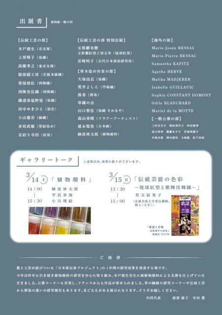 また、期間中は文学博士の児玉絵里子氏による講演(申込不要・参加費無料)、植物顔料に関する対談も同時に開催されます。