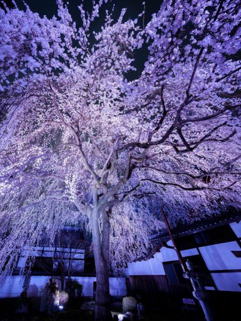 本満寺のしだれ桜は、京都に春の訪れをいち早く告げる存在として長年愛されてきました。昨年、撮影目的で数日間のみ試験的に設置した照明に浮かび上がる桜の姿が、居合わせた参拝者によってSNSで拡散。「一切の告知なし」にもかかわらず連日多くの人々が訪れ、その美しさに感動した方々から「来年も見たい」「開催してくれてありがとう」という温かい声を多数いただきました。