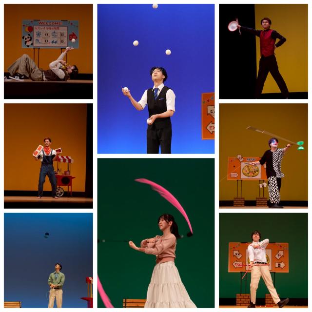 ジャグリングと無声劇のコラボレーションをお楽しみください。