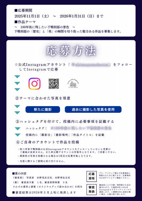 ①旧三井家下鴨別邸公式 Instagramアカウント@shimogamobetteiをフォローしてInstagramで応募