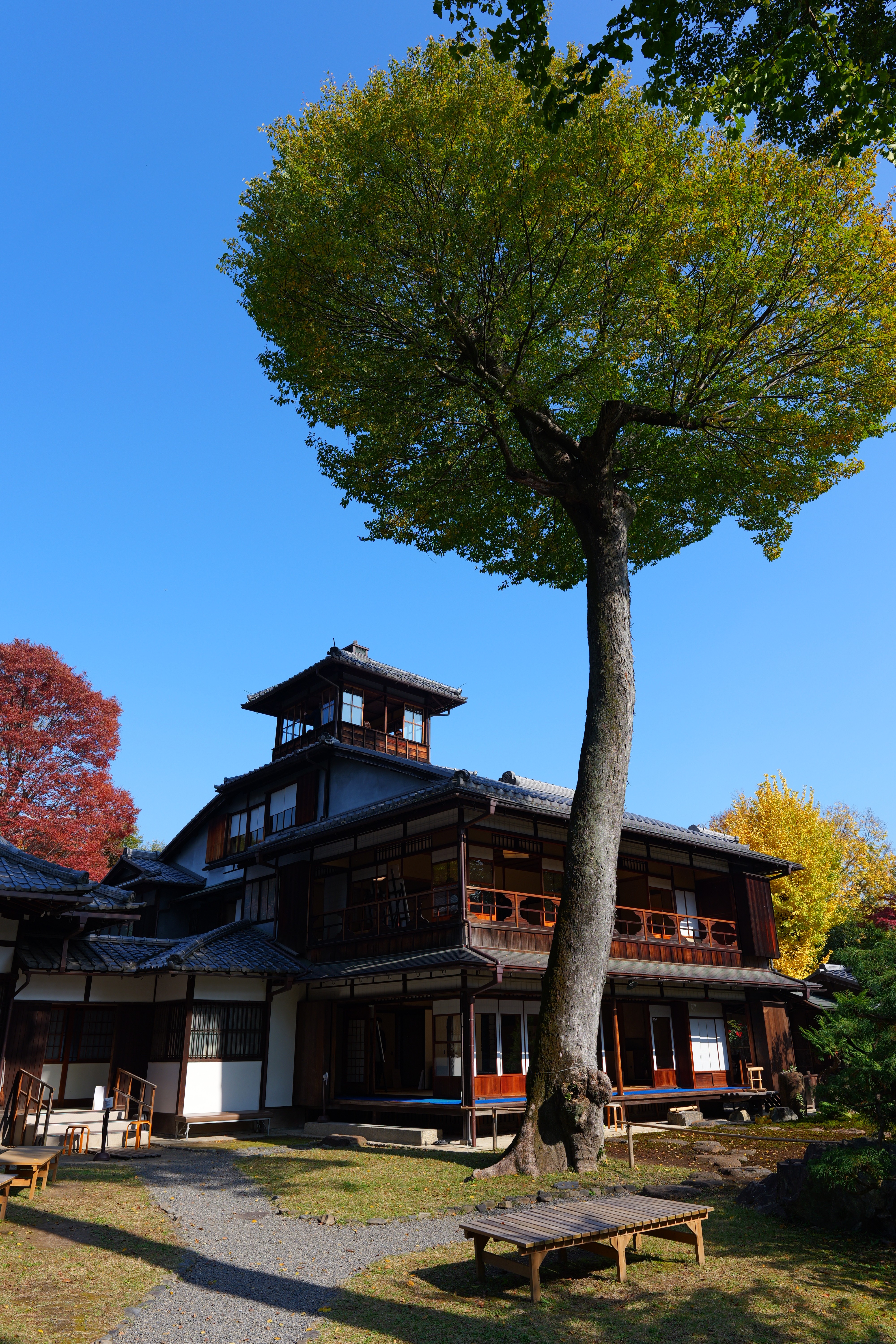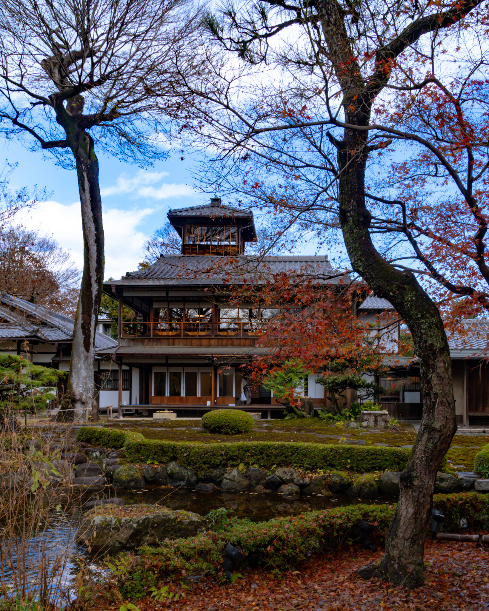 審査員評:主屋を斜め方向から見上げ、建物の立体感と広がりを引き出しています。巨木の伸びやかな姿を望楼の上に広がる空へ大胆に配した構図が印象的で、視線を上方へと導きつつ画面に力強いアクセントを与えています。建物の両脇には紅葉や黄葉が彩りを添え、抜けるような青空と相まって、爽やかな秋の空気感が心地よく伝わってきます。この光景が未来へと受け継がれていくことを願わせる一作です。