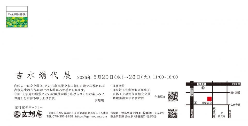 | 場所 | 京町家のギャラリー「玄想庵」 |