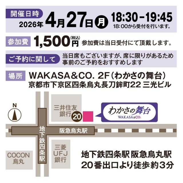 | 場所 | WAKASA&CO. 京都四条店2階 わかさの舞台 京都市四条烏丸長刀鉾町22 三光ビル |
