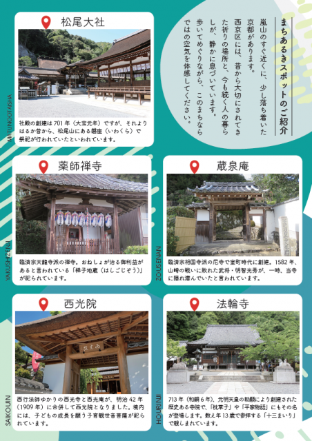 ● 協力寺社等:松尾大社、薬師禅寺、蔵泉庵、西光院、法輪寺
