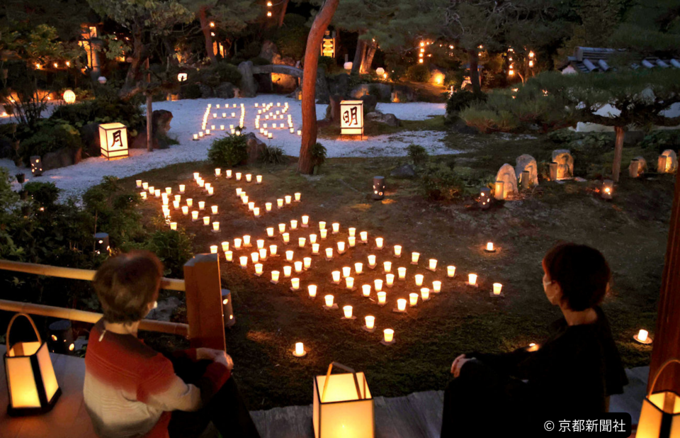 妙心寺山内にあり、沙羅の花で知られる東林院。秋には、住職手作りのあかり瓦「梵燈」による夜間特別拝観「梵燈のあかりに親しむ会」が行われる。この「梵燈」や古瓦の上に灯る800本の蝋燭が白砂や苔の庭をほのかに照らし出し、光が織りなす幻想的な世界が広がる。基本情報