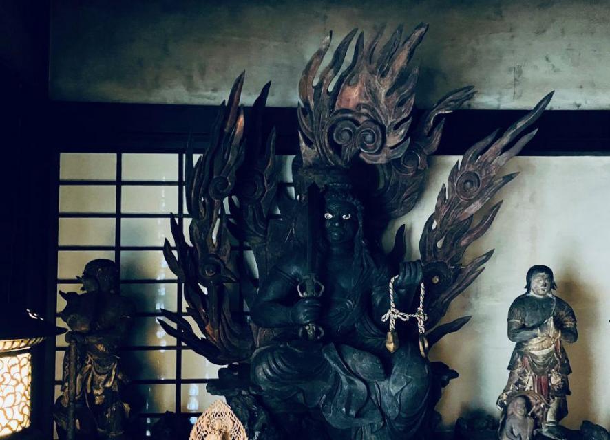 ・通常非公開の「不動明王半跏像」および脇侍「矜羯羅童子」「制多迦童子」から成る「不動三尊像」の御開帳