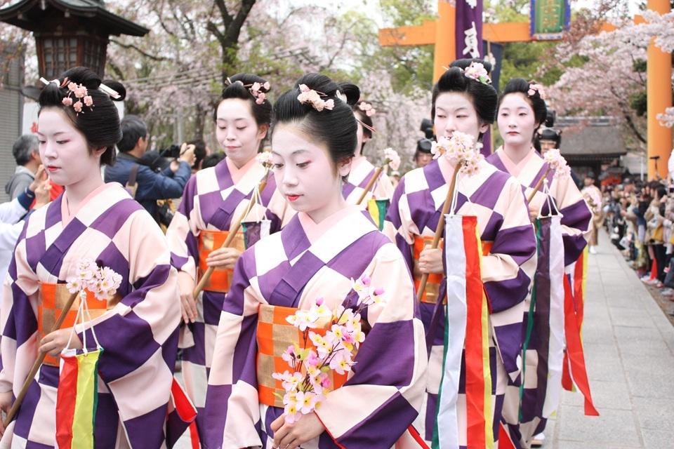 元は平城京に祀られていたが、平安遷都とともにこの地に移された歴史ある神社。平安の頃より、京都きっての桜の名所として知られる。桜花祭は、毎年4月10日の桜の時期に行われる。その起源は、花山天皇が後胤繁栄(こういんはんえい)を祈るため、平野神社へ行幸、臨時の勅祭を行ったことだと伝わる。10時からの神事のあと11時に花山天皇陵に参拝、12時より神幸列発輿祭が斎行され、13時から騎馬武者や織姫らの総勢約200名による時代行列が氏子地域を巡幸する。神社への還御は15時半頃となる。夜桜観賞は桜の開花に合わせて3月末頃から4月中旬まで行われる。基本情報