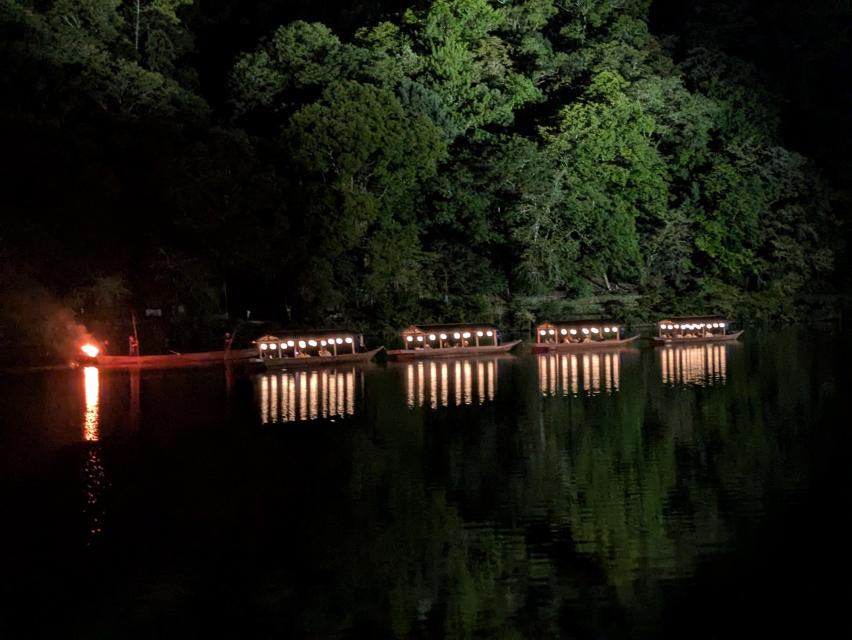 嵐山に流れる大堰川に屋形船を浮かべ、かがり火の中、古式漁法の鵜飼の見物を楽しめる。乗合船は、当日券を乗り場にて販売。食事付き鵜飼見物船、貸切船は事前予約が必要。料理内容は、ホームページでご確認のこと。基本情報
