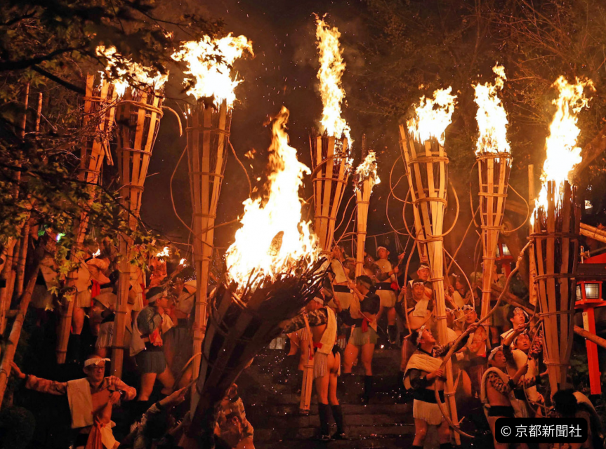 毎年10月22日に執り行われる京都三大奇祭のひとつ。その起源は天慶3(940)年、それまで御所に祀られていた由岐大明神が鞍馬に勧請された時に、村人が地主神である八所明神を神輿に乗せ、無数の松明を持って出迎えたという故事に由来するといわれている。祭りでは由岐神社と、神社に続く鞍馬街道を中心に集落一帯で行われ「サイレヤ、サイリョウ」の勇ましい声と共に、鞍馬の里が燃え上がる松明の炎で埋め尽くされていく。基本情報