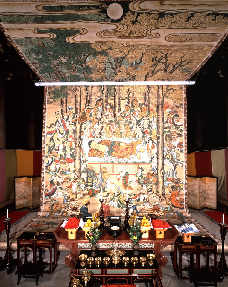 陰暦2月15日、釈迦の入滅の日に合わせた法要だが、現在は3月15日前後で行なわれている箇所も多い。