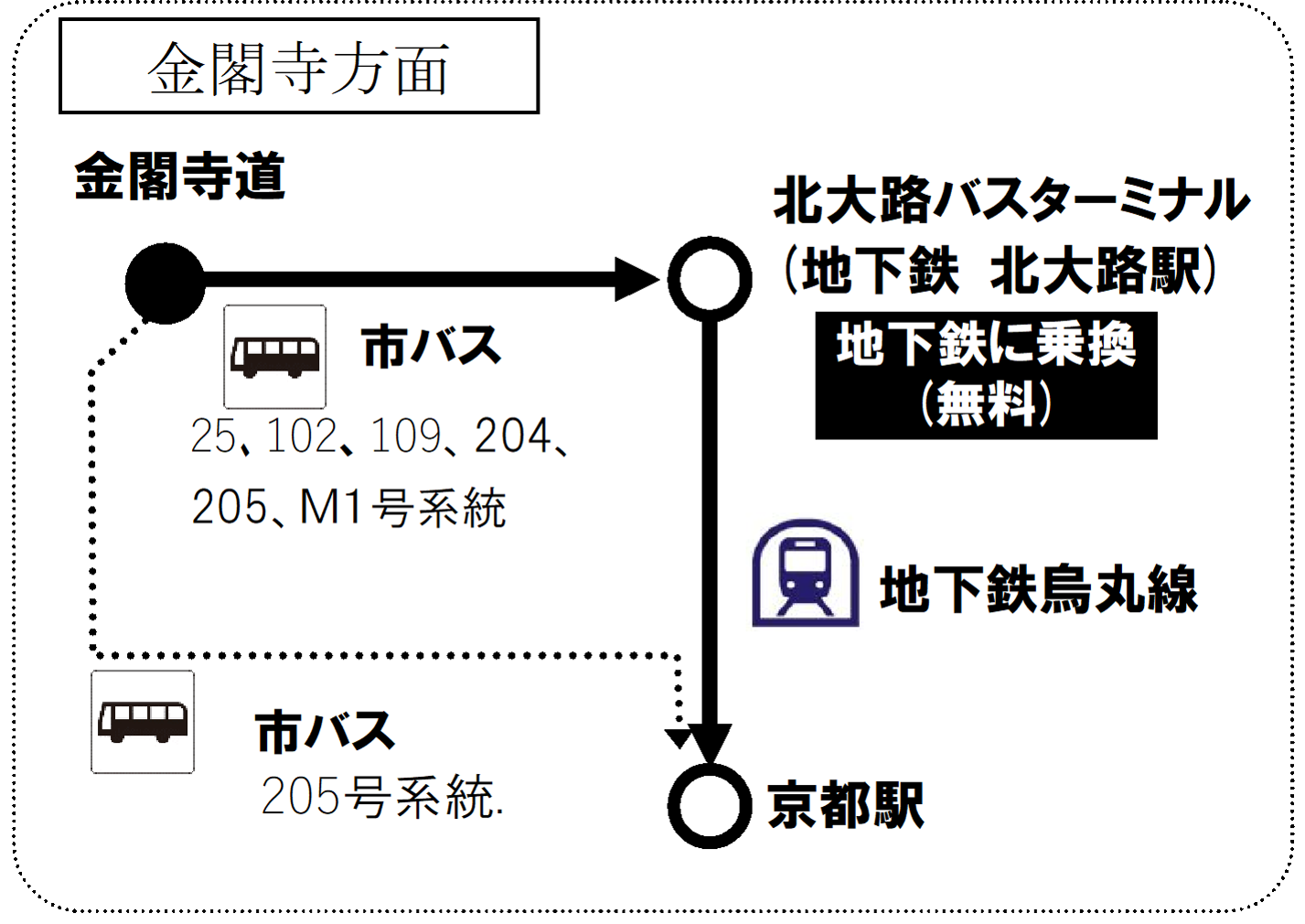 実施停留所:金閣寺道(北行)→北大路バスターミナル(地下鉄北大路駅)