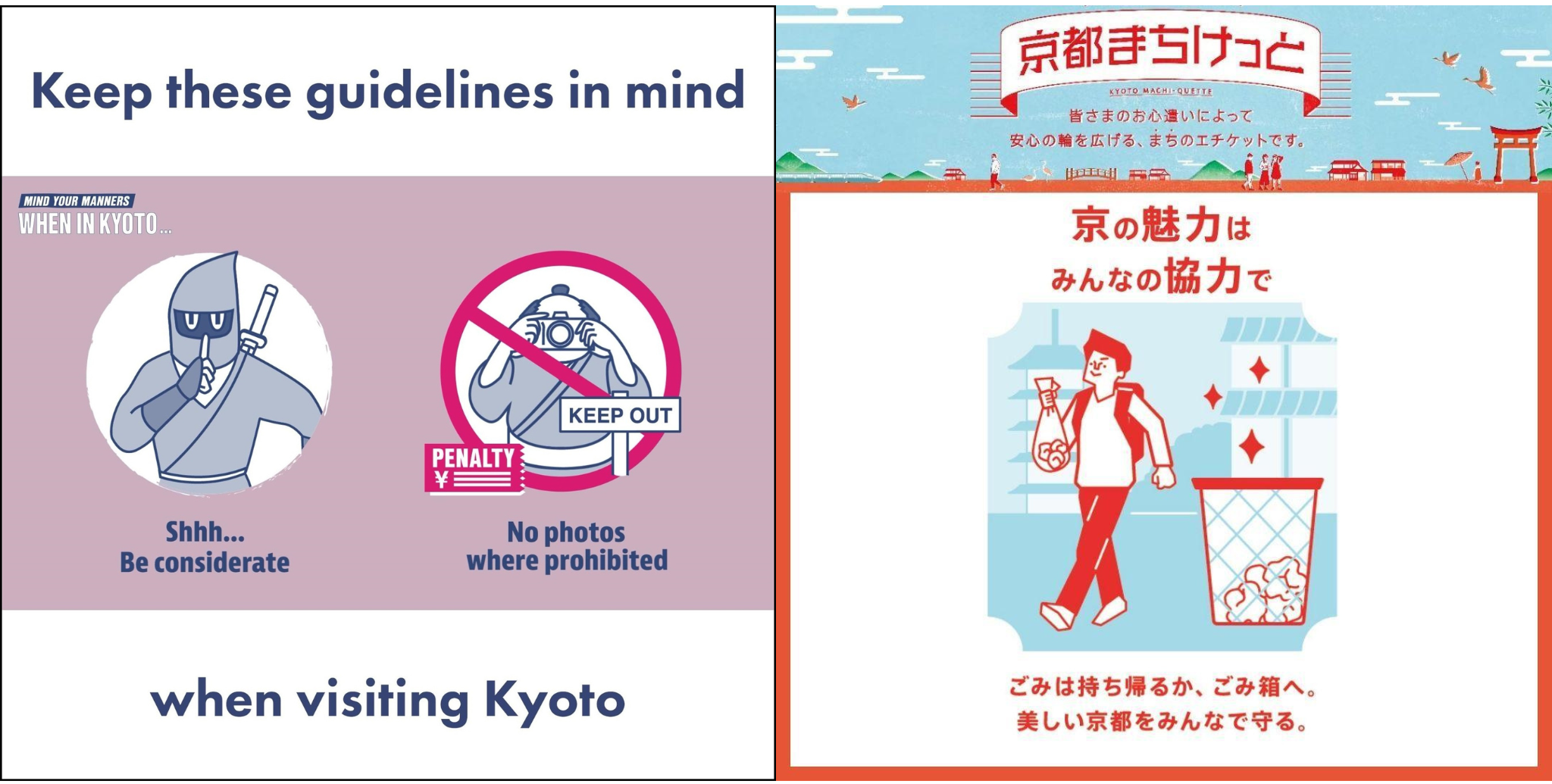 11月16日(日)から30日(日)まで、市内約7,300か所の京都市広報板に「TOURISTSHIP」を用いた「MIND YOUR MANNERS」ポスターを掲示し、観光客にマナーを呼びかけます。