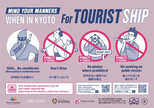 昨秋・今春に続き、JNTOを通じて海外の旅行会社へ観光マナーの周知を行い、旅行者にも京都でのマナー理解を促します。(11月上旬実施予定)