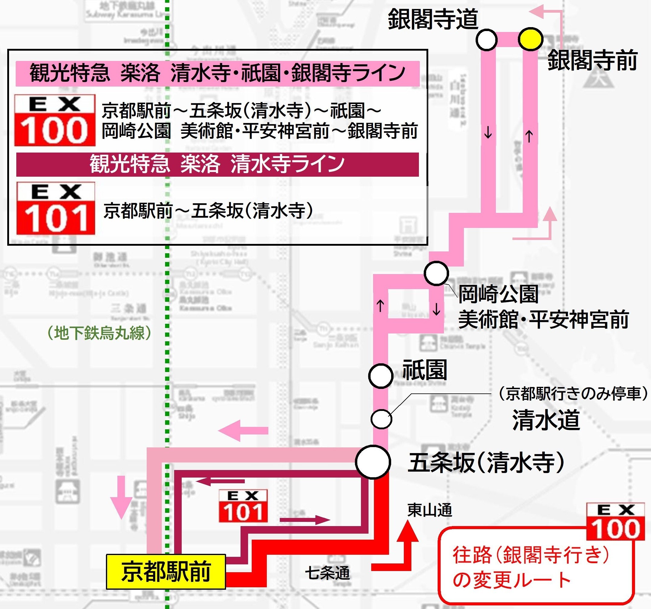 祇園、東山安井、清水道、五条坂、馬町、東山七条、博物館三十三間堂前、七条京阪前