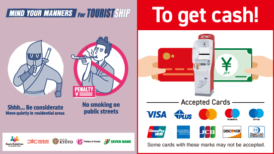 セブン銀行の協力により、11月1日(土)から12月20日(土)まで、京都市内のセブン銀行ATMで観光マナーを案内するメッセージが表示されます。