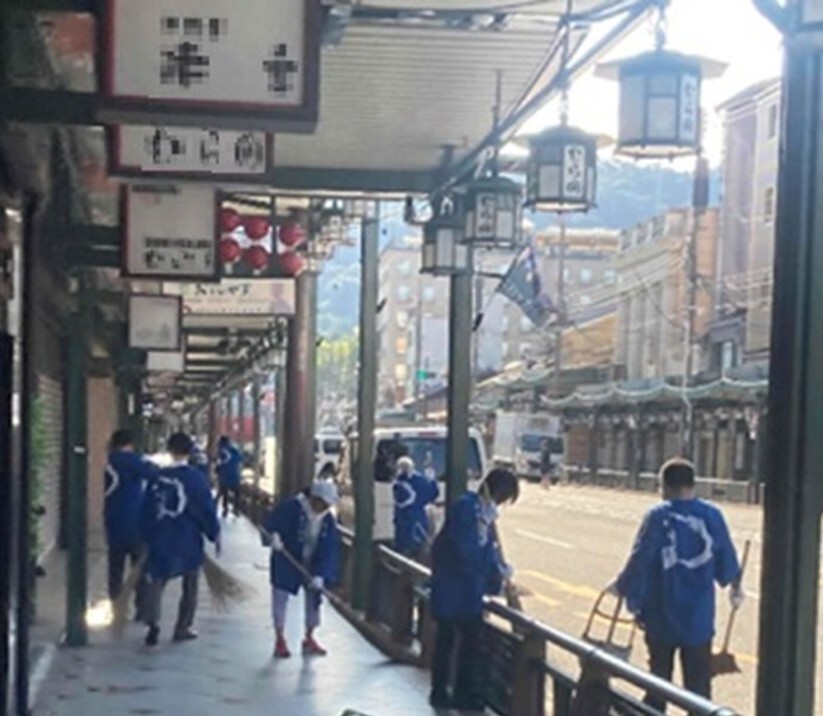 毎週水曜日の午前7時~8時頃、祇園商店街振興組合の有志「祇園青龍組」を中心に、京都市職員やボランティアも参加して、地域一体で清掃活動を実施します。