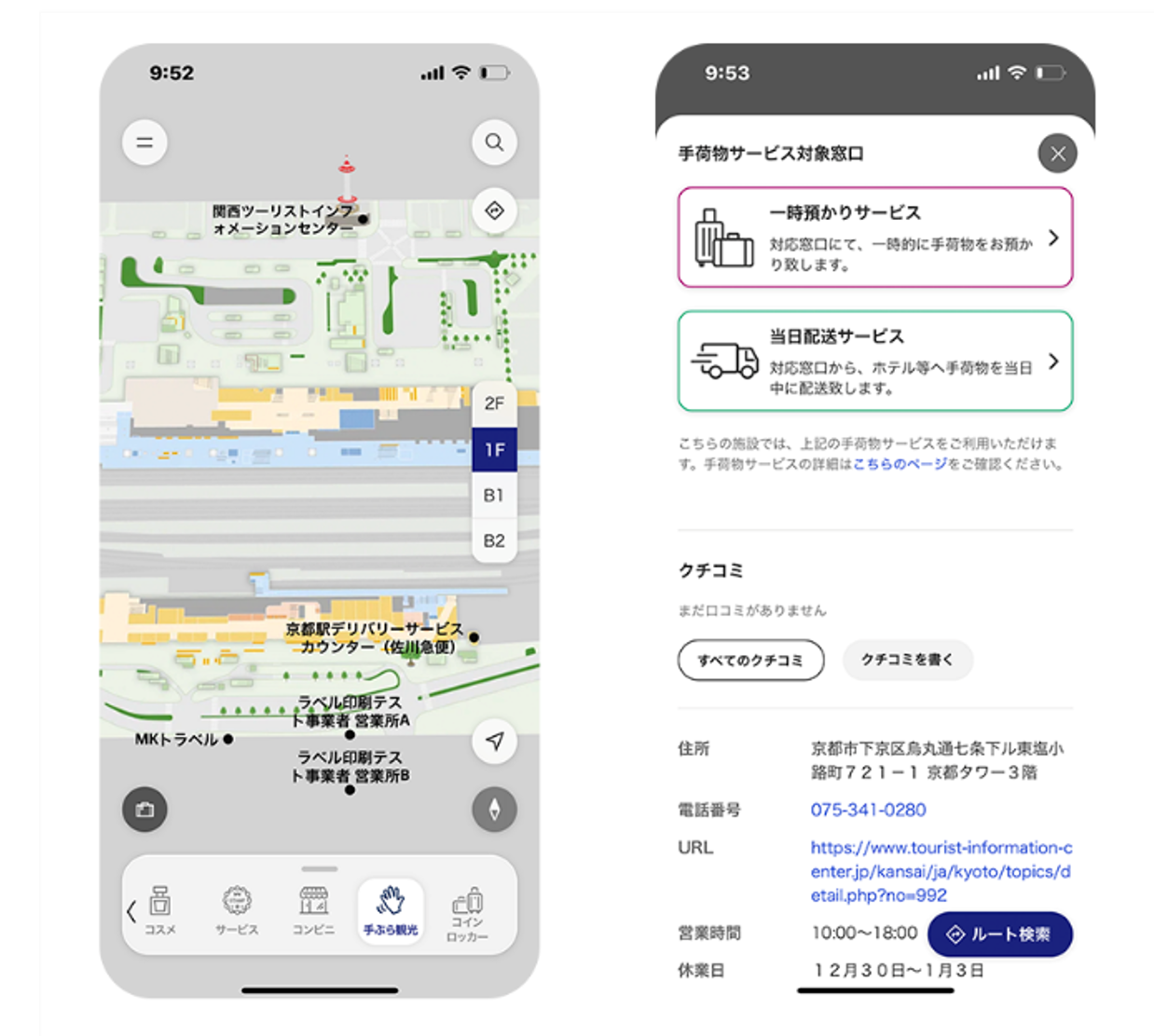 10月21日から「京都観光デジタルマップ(京スマ)」と「京都駅デジタルマップ(駅スマ)」で、手ぶら観光サービスの事前予約ができるようになりました。このサービスを使えば、観光前に荷物を預けたり、宿泊先まで当日中に荷物を届けてもらうことができ、重い荷物を持たずに身軽に観光を楽しめます。