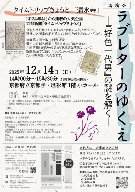 【講演会】ラブレターのゆくえ ―『好色一代男』の謎を解く―【京都府立京都学・歴彩館】