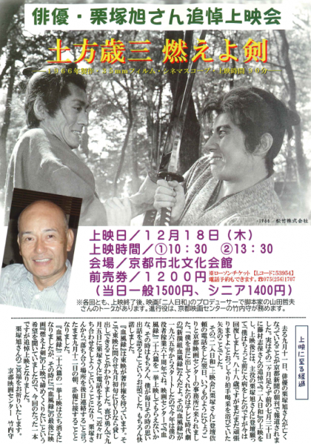 燃えよ剣~俳優・栗塚旭さん追悼上映会【京都市北文化会館】