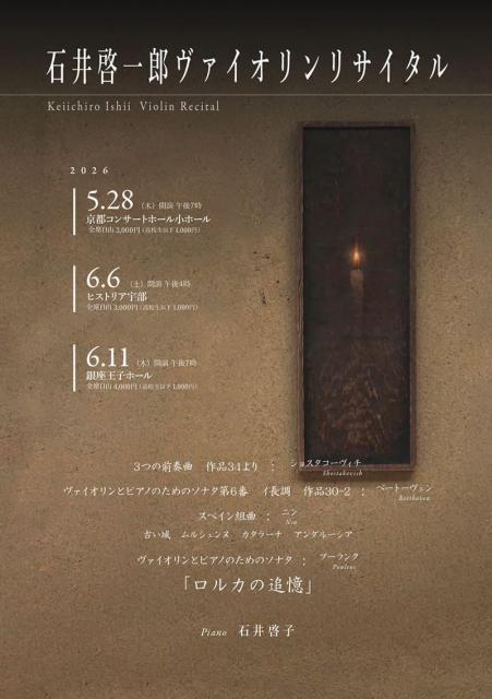 石井啓一郎ヴァイオリンリサイタル【京都コンサートホール アンサンブルホール ムラタ】