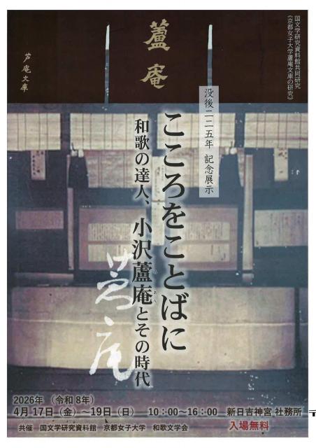 蘆庵没後225年記念展示 「こころをことばに 和歌の達人、小沢蘆庵とその時代」【新日吉神宮】