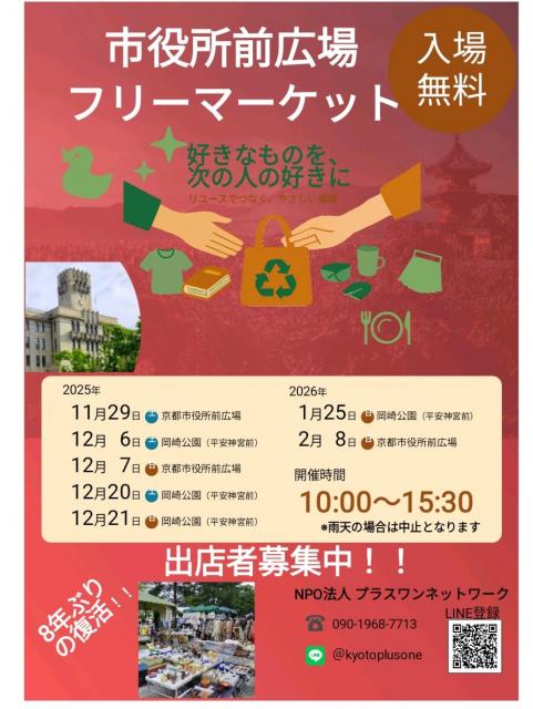 7月10日(木)、8月20日(水)、9月10日(水)、10月29日(水)、11月お休み、12月17日(水)平安蚤の市【岡崎公園】