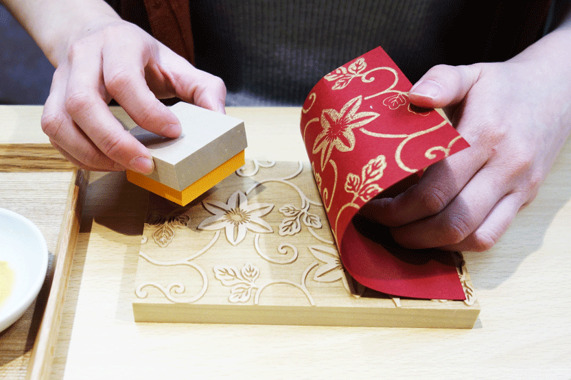 ~神社仏閣や茶室を美しく彩るからかみの技法でつくる手摺りポストカード~京からかみ 丸二