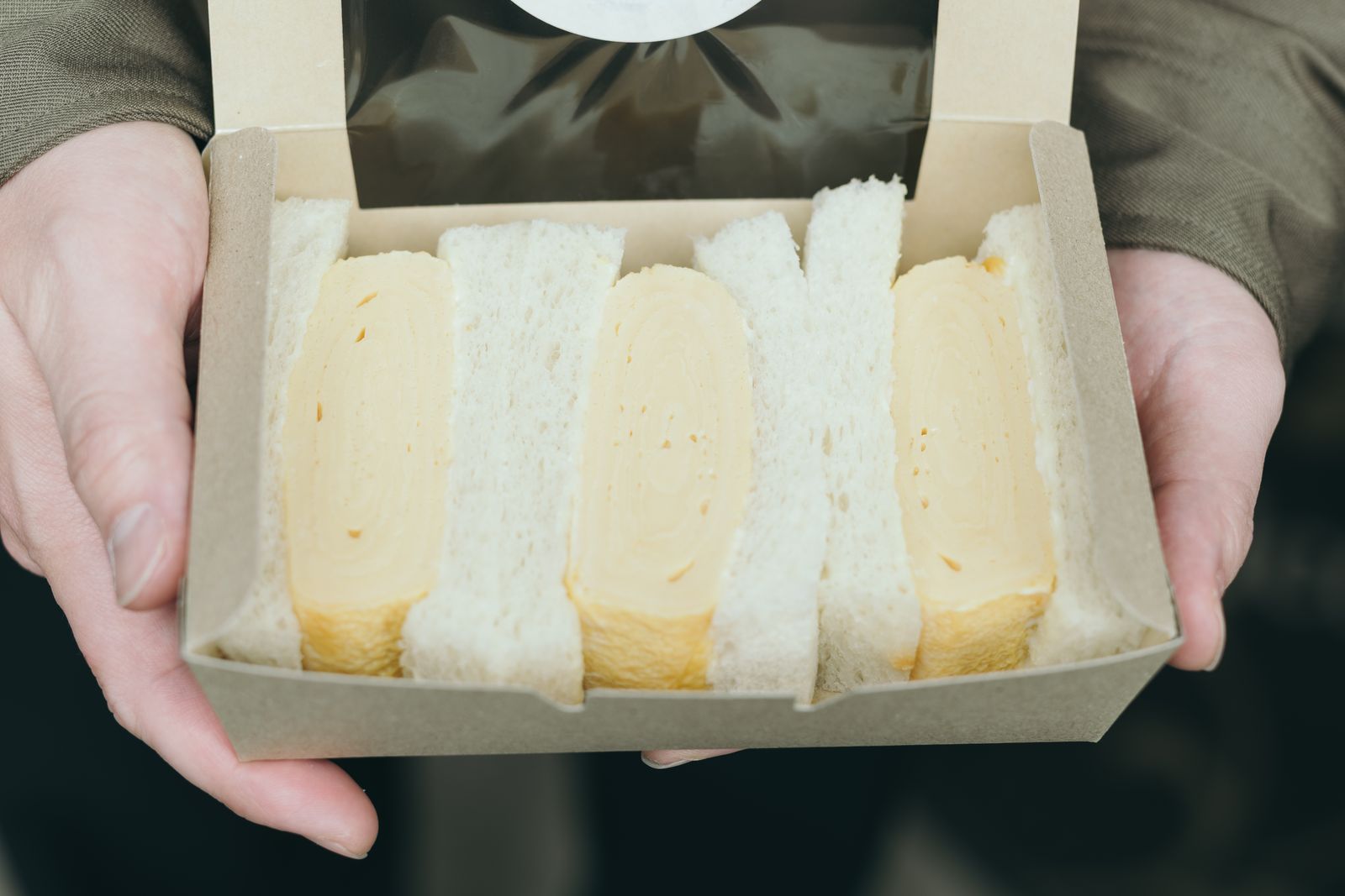 この3つ、実は似て非なるもの。両端のサンドはマヨネーズが塗られたプレーン、真ん中のサンドには柚子胡椒がプラスされています。京都のたまごサンドといえばカラシが一般的ですが、柚子胡椒のさわやかな辛みが、たまごの味わいを引き立てます。京都のだしまきサンドに新しい風を吹き込んでいます。