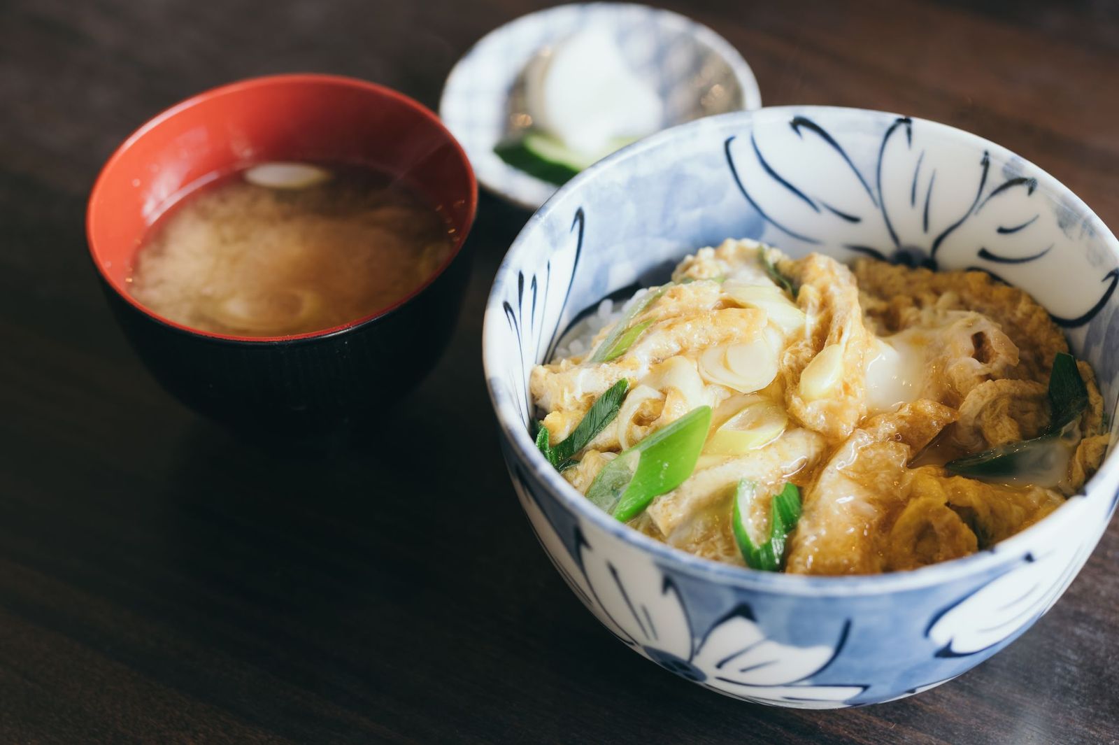 店の扉を開けると、おだしのいい香りが。ここでぜひ味わいたいのが、京都の日常で親しまれている「衣笠丼」です。