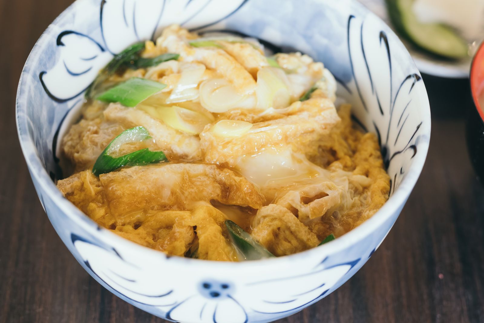 ほのかに甘いだしをたっぷり含んだきざみおあげ(油揚げ)と、シャキシャキした九条ネギを、ふわふわの卵でとじ込めたその姿に、食欲がそそられます。