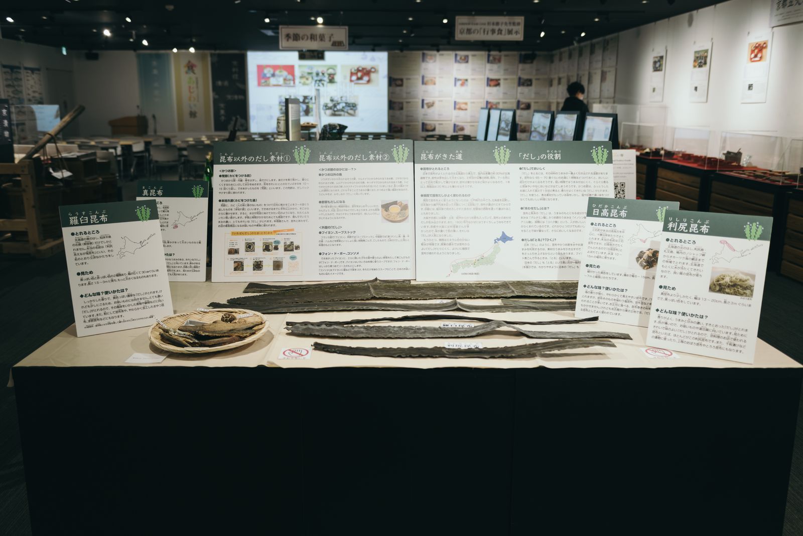 ここでは、だしの素材である昆布を展示し、種類や大きさ、質感を知ることができます。さらに、だしの試飲体験があり、ふだん家ではなかなかできない、鰹や昆布、合わせだしの飲み比べをすることができます。