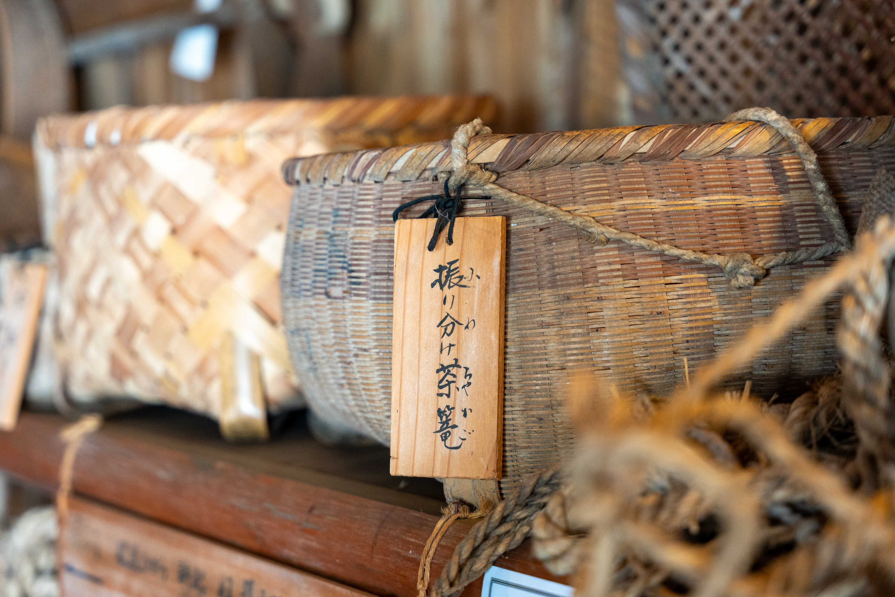 一見すると素朴に見える道具にも、暮らしを支えてきた合理的な工夫が隠されており、「なるほど」と声が出るような発見があります。かつてこの地域では山でのしごとも盛んに行われており、その道具や、飢饉に備えた保存食の容器、田んぼへ赤ちゃんを連れていくための子守かごなど、里山の暮らしのリアルが展示から伝わってきます。