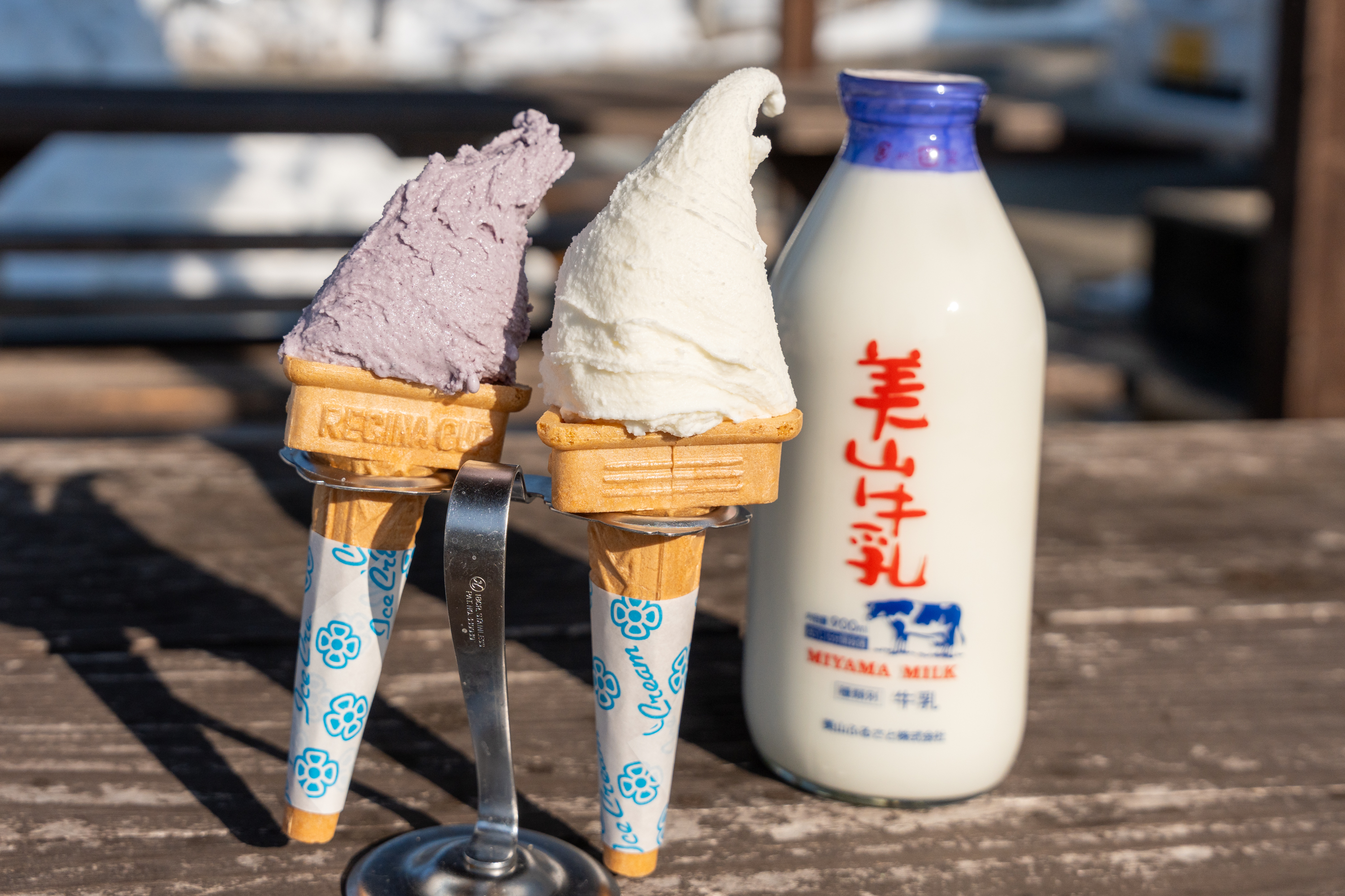 道の駅「美山ふれあい広場」に位置するこちらでは、町内3軒の酪農家が育てた乳牛から搾った生乳だけを使い、85℃・15分間かけてじっくりと殺菌しています。大手メーカーの超高温殺菌と比べると、手間はかかりますが、その分だけ生乳本来の風味と甘みがしっかり残ります。ソフトクリームに至っては殺菌温度をさらに70℃まで下げるという、妥協のないこだわりぶりです。